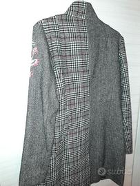 Desigual - cappotto donna corto, colore grigio, ricamato. Tg. 38 Ottima vestibilità al ginocchio. Materiale: Poliestere Lana. Condizioni perfette
