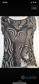 Bellissima maglia - Mini abito Desigual sfondo nero con fantasia tg s - inspired by Cirque Du Solei- logo laterale sul retro in ottime condizioni - (possibilità di abbinarla a leggins stesso colore del ricamo posteriore -in vendita a parte)