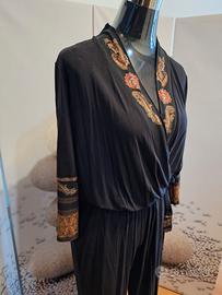 colore nero Tg L brand Desigual. Ecco questa comoda e morbida tuta con pantaloni lunghi, scollo a V incrociato, manica tre quarti e cintura con fiocco regolabile sulla vita.
