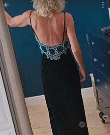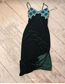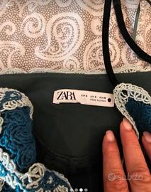 Bellissimo vestito lungo Zara in velluto, colore verde scuro con dettagli in pizzo verde acqua. Indossato solo una volta