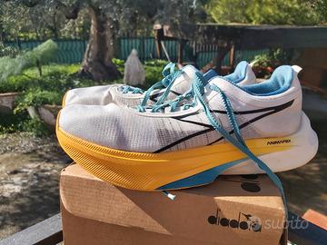 Come da titolo vendo, per inutilizzo a causa di cessata attività agonistica, scarpe da running da gara DIADORA GARA CARBON con piastra in carbonio . Scarpa ad alte prestazioni, super leggera, utilizzata da me solo per 3 mezze maratone (totale meno di 100km). Praticamente quasi nuove. Vendo per cessata attività agonistica.