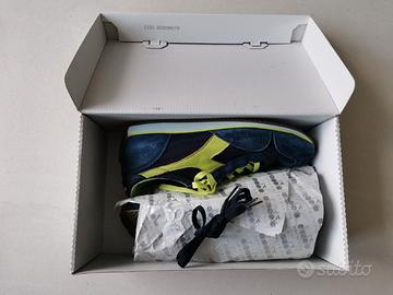 Colore blu con inserti e lacci verde acido (lime).