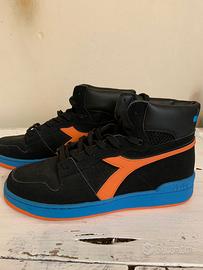 Sneaker DIADORA ORIGINAL -nuove -scarponcino Basket -imbottitura zona caviglia -camoscio nero + lacci neri -fregio arancio suola gomma blu e arancio n. 44 (10)