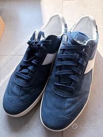 Vendo splendide sneaker Diadora Pichichi originali, colore blu "Poseidon" con dettagli bianchi. Sono complete di scatola originale. Modello: Pichichi (101.173100 01 60124) Taglia: 44 EUR (9.5 UK / 10 US) Materiale: Tomaia in morbido suede/scamosciato di alta qualità. Stile: Design classico d'ispirazione calcistica, perfette per un look casual/urban. Disponibile per spedizione o consegna a mano.