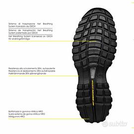 Suola: Intersuola in Eva più film protettivo TPU. Battistrada: Gomma nitrilica HRO, tecnologia con sistema di traspirazione NET BREATHING SYSTEM by GEOX