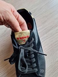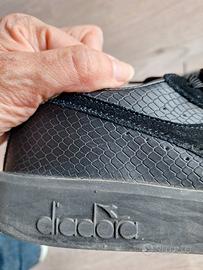 Sneakers Diadora, color nero, in tessuto pitonato e scamosciato, con dettagli dorati. Utilizzate pochissimo, soletta interna perfetta e nessuna usura sulle suole. taglia 39 eur