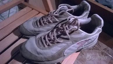 Sneakers Diadora originali unisex numero 40 in tela color fango e vero camoscio. Logo bianco con contorni rossi, punta rossa, suola poco usurata. Stato generale buono.