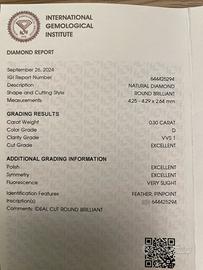 Vendo diamante naturale sciolto di altissima qualità, certificato IGI.