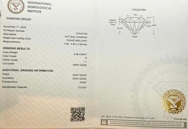 Certificazione: IGI – International Gemological Institute