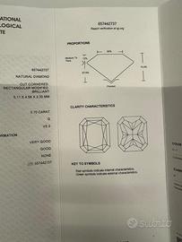 Vendo diamante naturale certificato IGI da 0.70 carati, taglio brillante rettangolare (radiant), blisterato e sigillato.