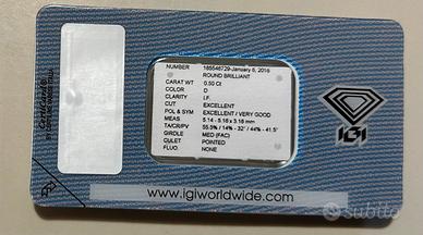 Diamante naturale 0,50 ct D IF – Certificato IGI Antwerp