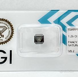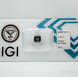 Diamante naturale 1.26 ct – IGI – Fancy Dark Grayish Green Yellow – VS2 – Taglio Square Emerald