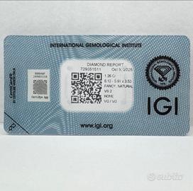 Il diamante è originale, naturale e accompagnato dal certificato IGI.