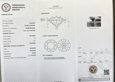 DIAMANTE NATURALE 1CT D COLOR 3EX.