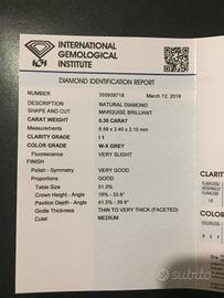 Vendo Diamante da 0.30 comprato come investimento/regalo ma al momento ho bisogno di liquidità.
