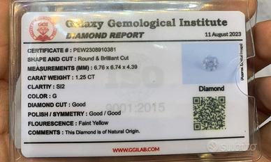diamante naturale certificato 1.25 carati