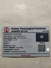 Prezzo : 3700 € Diamante naturale certificato proveniente dal Pakistan . Carati : 1.51 Colore : H Chiarezza : I1 Dimensione : 7.07 x 7.06 x 4.54 mm