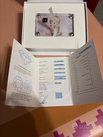 Diamante per battesimo bambina, prodottoda “Eilat” , certificato e numerato nuovo . 0,04 carati taglio brillante proporzione perfetta, lucentezza perfetta.