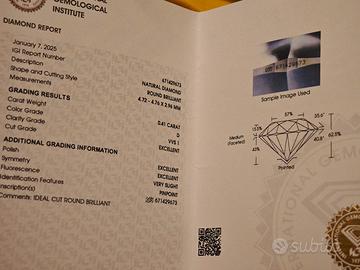 diamante vvs1 0.41ct D preferibilmente ritiro a mano