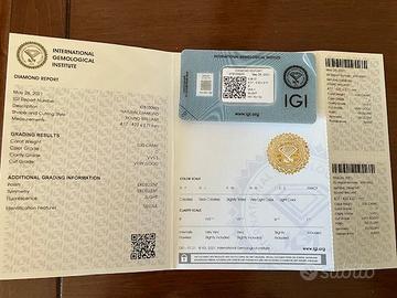 VENDO DIAMANTE CERTIFICATO IGI DI 0,30 CARATI ROUND BRILLIANT COLORE D.