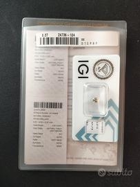 Certificato di autenticità IGI ente riconosciuto a livello mondiale per la certificazione dei diamanti .