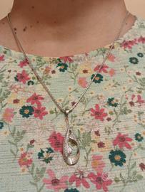 è una collana con pendente con pietre simil diamantini è lunga 50 centimetri con estensione allego foto in argento 925