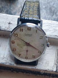 Orologio Diantus anni 60, usato in discrete condizioni estetiche ma perfettamente funzionante. Cassa in acciaio inox 36 mm, movimento a carica manuale 15 rubini anti magnetico, cinturino in gomma non originale. L'orologio funziona bene, ma presenta evidenti segni di usura dovuti al suo normale utilizzo per tanti anni, ideale per un eventuale restauro. Vendo con formula visto e piaciuto e conseguente esclusione di garanzia ad euro 30,00 , non uso tuttosubito solo consegna a mano in zona Lodi/ Pavia, no altre modalità di transazione. Acquisto orologi Seiko subacquei automatici usati, ottima valutazione pagamento immediato. Grazie.