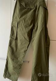 Pantaloni rip stop verde oliva con tasconi laterali. Taglia W 32, Vestibilita’ ampia. Nuovi con cartellino
