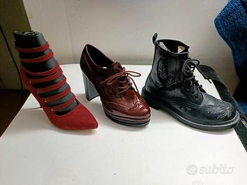 Dieci paia di scarpe da donna tg. 38 foggia varia come da foto. Un anfibio goffrato, una francesina coda di rondine con tacco, altre con tacco da 10 o 12 cm. in buone condizioni. Indossate poco, alcune solo una volta. Vendo solo in blocco non separatamente (Il prezzo richiesto é relativo all'intero lotto).
