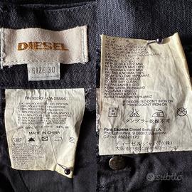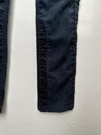 Jeans in velluto a coste DIESEL, colore blu marina, modello 5 tasche, insoliti riporti in velluto a contrasto su davanti, interno gamba sx e tasche dietro. Misura “30”.