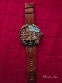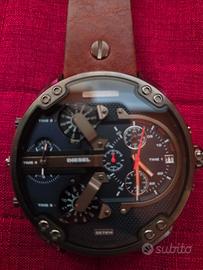 Vendo splendido orologio Diesel Mr. Daddy 2.0 modello DZ7314 originale, in condizioni impeccabili. L'orologio è stato indossato soltanto 3 volte ed è praticamente pari al nuovo. Condizioni: Eccellenti, senza graffi visibili sul vetro o sulla cassa. Cinturino: In vera pelle marrone (Genuine Leather), perfetto e senza segni di usura o sudore. Quadrante: Oversize da 57mm con dettagli in grigio canna di fucile e oro, molto d'impatto. Funzioni: 4 fusi orari indipendenti, cronografo e datario (tutti funzionanti). Resistenza all'acqua: 3 BAR. non offerte assurde