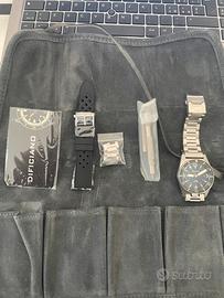 Includo custodia originale con doppio cinturino, card garanzia, maglie aggiuntive e attrezzi per cambio cinturino.