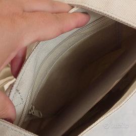 Dimensione Danza, borsa in tela colore ecru con disegni e scritte solo sul fronte. Chiusura con zip e charme a stella. Nuova con cartellino. Dimensioni cm 36x30. Prezzo di cartellino €40, in vendita qui €18