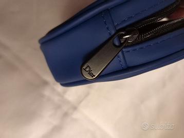 Aggiungi un tocco di lusso firmato Dior al tuo quotidiano o ai tuoi viaggi! Questa elegante pochette/beauty case presenta un design minimalista e chic nel raffinato colore Blu Navy, con il logo "Dior" impresso in rilievo al centro, segno inconfondibile di prestigio.