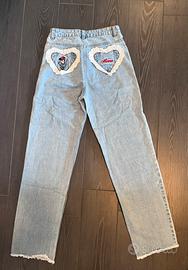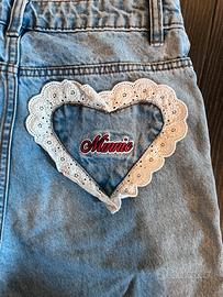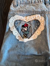 Taglia S, jeans leggero con tasche decorate con pizzo e ricami disney
