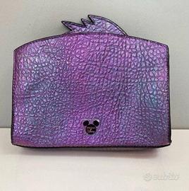 Disney Villains Ursula Beauty Case.Ursula,la cattiva del cartone animato Disney "La Sirenetta". Questo prodotto fa parte della collezione Mad Beauty,un'azienda britannica specializzata in prodotti di bellezza a tema Disney. Il beauty case è di colore viola con dettagli neri e bianchi,ed è decorato con borchie e una targhetta con il logo Disney.Realizzata in pelle vegana viola iridescente con perline multicolor scintillanti,labbra glitterate e una robusta cerniera, questa trousse da trucco affascina con il suo emozionante effetto scintillante.un accessorio ideale per i fan di Disney e per chi ama i trucchi e i prodotti di bellezza.E' abbastanza spaziosa per contenere cosmetici essenziali come rossetti,ciprie,dentifricio e deodorante,e può essere utilizzata anche per riporre caricabatterie del telefono e altri piccoli oggetti.