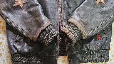 Giacca in vera pelle vintage, bomber iconico e molto raro. Con patch topolino. Taglia indicata M ma veste una L