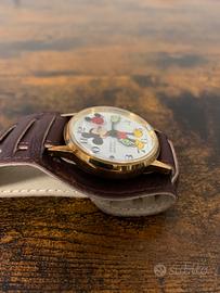 Orologio vintage Disney Topolino Avronel. Made in France. Cassa dorata da 33 mm, esclusa corona. Movimento a carica manuale. Funzionante. Cinturino bund pelle. Prezzo non trattabile.