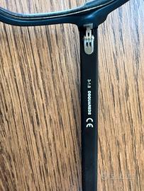 Bellissima montatura in parte nero lucido in parte nero satinato, in ottime condizioni, NESSUN SEGNO, formato grande unisex, per lenti vista o sole.