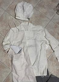 Divisa da cuoco, anche prr scuola alberghiera, completa: torcione, giacca, pantalone, parannanza, cappello