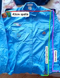 Divisa scout AGESCI ufficiale, completa, pagata 250 euro al negozio la tenda Roma usata solo 2 volte come nuova,vendo solo in blocco, misure in foto, no perditempo, no cambio.Maglione Lana 100% tg L, Camicia XXL manica lunga, Pantalone lungo in velluto tg 58, pantalone corto in velluto tg 56, cintura in cuoio completa+ In regalo un pantalone Tg 48.