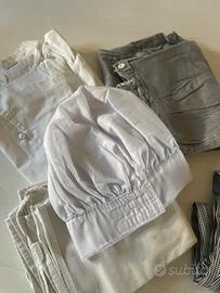2 divise da cuoco complete di casacca oantalone grembiule e cappello