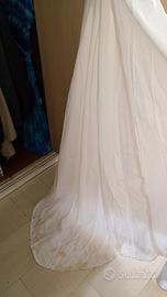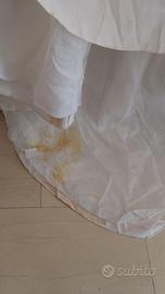 Regalo vestito da sposa Taglia 46 ho delle macchie sulla parte bassa del vestito come visto in foto, c'è anche del tulle compresso e una coroncina di fiori