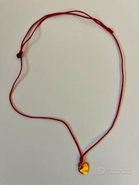 DoDo collana bambina cordino in cotone fucsia sottile e charm cuore oro rosa 9k.
