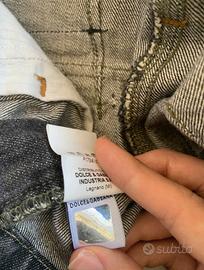 Jeans in denim grigio multitasche Dolce & Gabbana, collezione Al2004. Questi jeans in denim grigio Dolce & Gabbana, collezione Al2004, uniscono un look funzionale e robusto a un taglio raffinato. Progettati con numerose tasche funzionali, offrono un tocco urbano pur mantenendo una silhouette slanciata. Perfetti per un look casual ma distintivo di tutti i giorni. In buone condizioni. Taglia 42 IT. Vestibilità maschile M/L (ma benissimo versatili anche per una donna).
