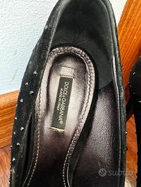 Dolce & Gabbana decolletè in camoscio nero con strass in tinta , plateau interno quindi comodissime , numero 39 , condizioni ottime , con scatola e dust, retail 660 euro