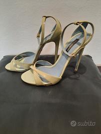 Eleganti sandali Dolce & Gabbana, cinturino alla caviglia e chiusura con fibbia, soletta in pelle azzurra con logo, tacco a stiletto cm 12, punta aperta a mandorla condizioni ottime usato pochissimo, un modello raffinato e intramontabile.