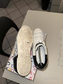 Scarpe Dolce & Gabbana, bianche e nere con dettaglio della scritta in argento. Tenute in ottime condizioni, senza nessun tipo di graffio o taglio.