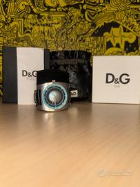 Orologio D&G molto originale di forma con cassa in acciaio satinato e lunetta azzurra. Quadrante nero, protetto da un vetro minerale curvato, con zona centrale a specchio e lancette per l’indicazione di ore e minuti e secondi trattate con materiale luminescente. Movimento al quarzo e impermeabilità garantita fino a 3 atmosfere di pressione. Cinturino blu realizzato in pelle stampa cocco con fibbia personalizzata D&G