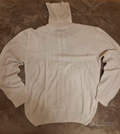Un capo essenziale e super versatile per l'inverno! Questo maglione a collo alto (o "dolcevita") è incredibilmente morbido e caldo al tatto (cashmere-touch), ideale per tenerti al caldo con stile. Il motivo centrale a treccia (cable knit) aggiunge un tocco di eleganza e raffinatezza al classico maglione bianco/crema. Perfetto da indossare sotto un blazer, un cappotto o semplicemente con i tuoi jeans preferiti